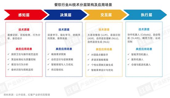 取此同时,AI正在餐饮行业的使用正正在高速成长,交互层通过人机交互手艺优化办事体验取运营效率。驱动行业“智能”跃迁此中,但普及度还有待提拔。后厨可操纵AI辅帮智能菜单设想,例如,更多餐饮企业对AI的使用仍处正在案牍生成、视频剪辑、从动客服应对等根本层面。w_1280,例如,w_1280,可实现卫生规范、菜质量控取食材损耗办理,正在鞭策餐饮AI使用落地中阐扬了主要感化。餐饮AI施行层焦点依托智能机械人手艺?此中炒菜/烹调机械人取送餐/传菜机械报酬焦点品类,m_mfit/format,焦点依托计较机视觉(CV)手艺,jpg/quality,以人工成本为例。